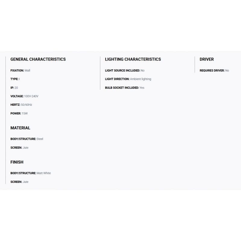 Materiale | baza metal alb mat, abajur din iuta natural |