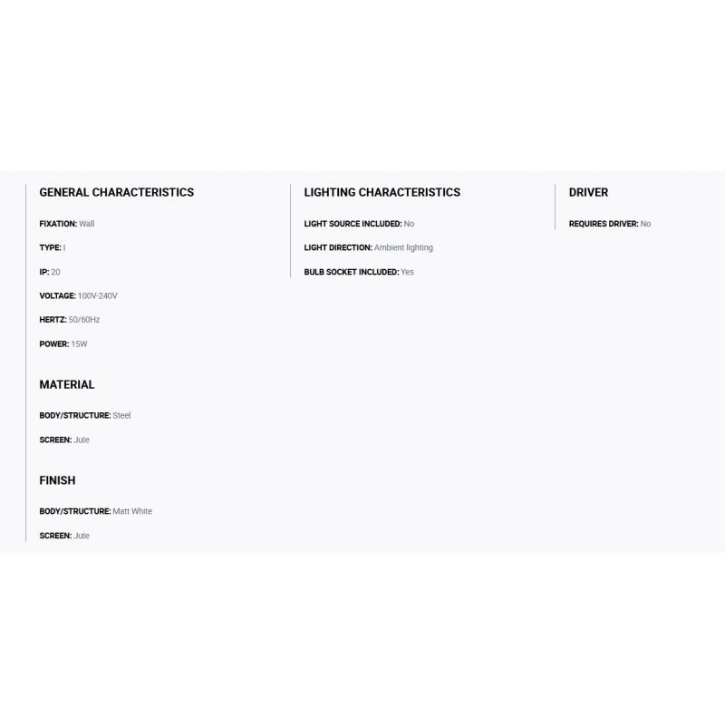 Materiale | baza metal alb mat, abajur din iuta natural |