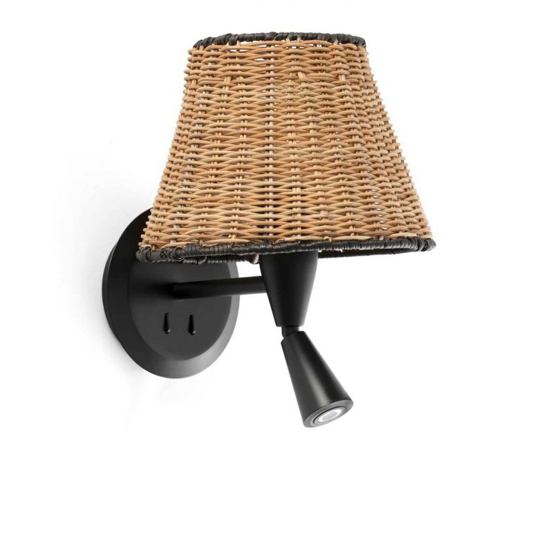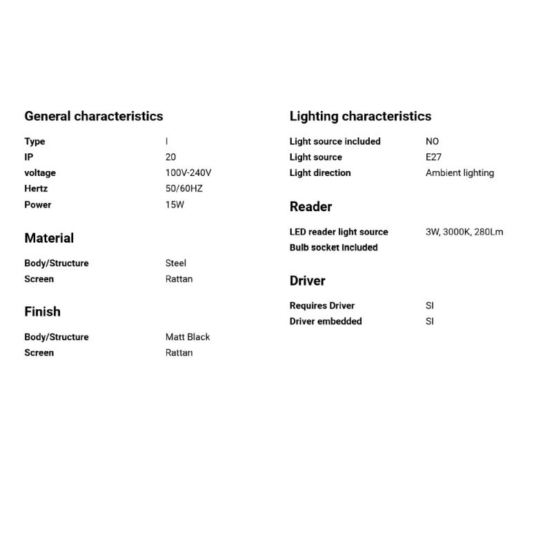 Descriere | structura din otel finisaj negru, abajur din fibre de ratan impletite |