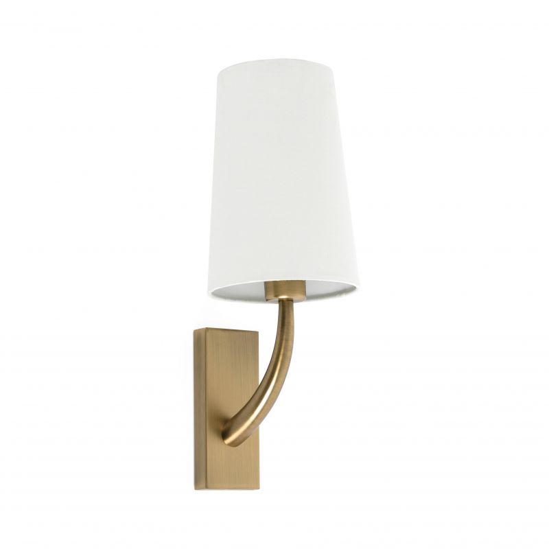 Descriere | baza metal finisaj auriu cu aspect învechit, abajur textil alb |