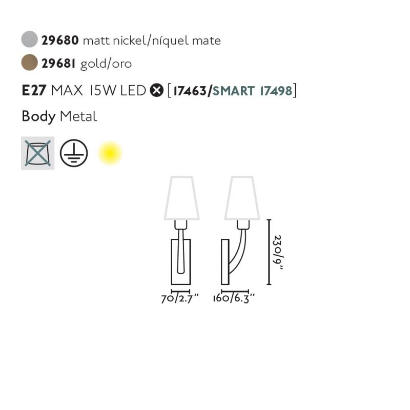 Putere | 1x max.15Watt bec LED E27 [ bec recomandat cod ref: 17463 ] exclus din pret |