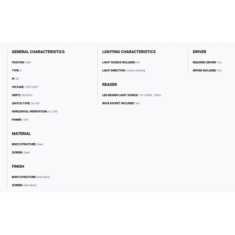 Materiale | metal finisaj negru mat cu abajur negru mat |