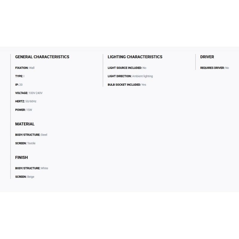 Materiale | baza metal finisaj alb, abajur textil plisat bej |