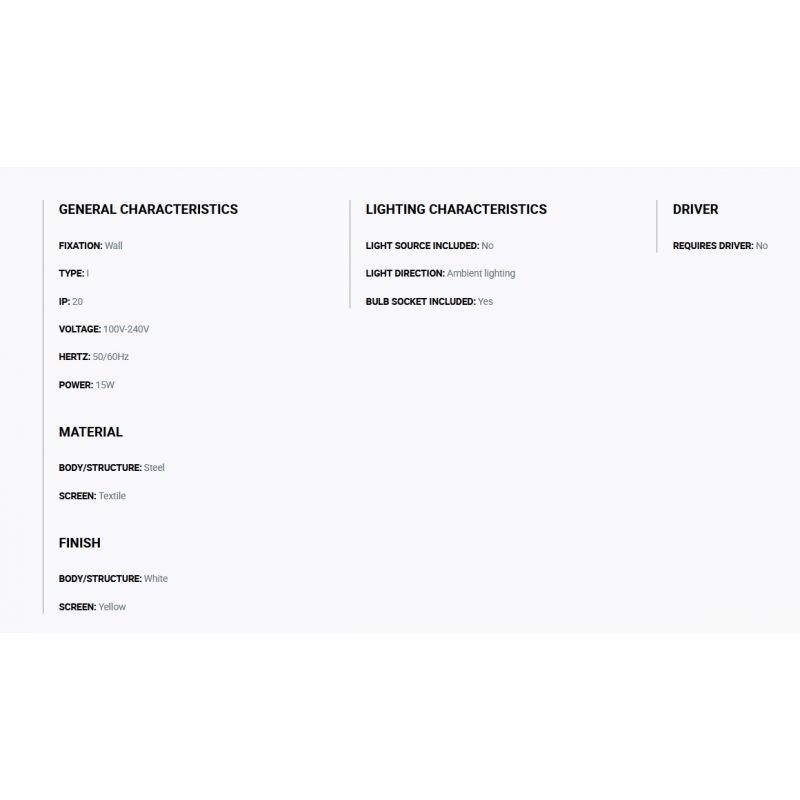 Materiale | baza metal finisaj alb, abajur textil plisat galben |