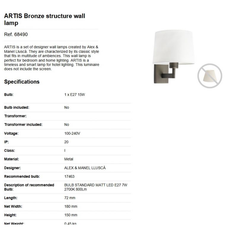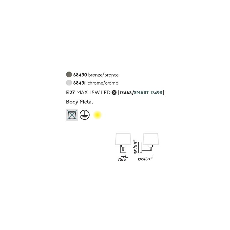 Putere | 1x max.15Watt bec LED E27 [ bec recomandat cod ref: 17463 ] exclus din pret |