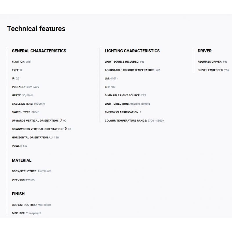 Materiale | aluminiu negru, difuzor PMMA transparent |