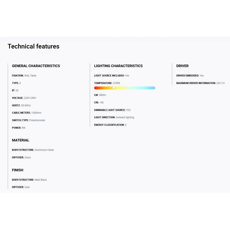 Informatii produs: | corpul de iluminat poate fi instalat ca lampa de perete sau poate fi folosit ca lampa de masa |