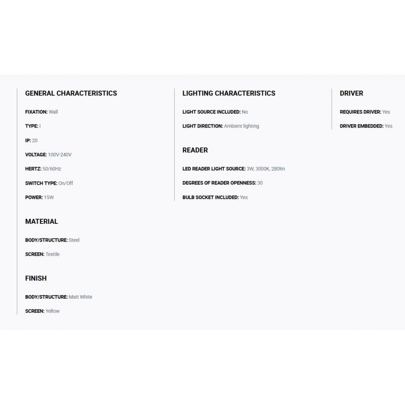 Aplica moderna design elegant SAMBA reader LED alb/galben