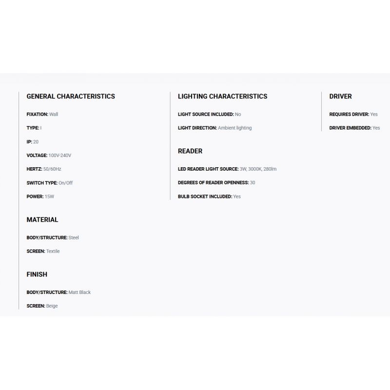 Putere | 1x max.15Watt bec LED E27 exclus din pret + reader LED 3W, 3000K, 280lm, inclus in pret |