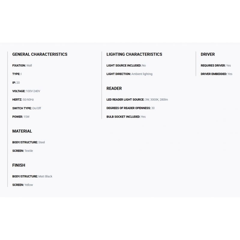 Aplica moderna design elegant SAMBA reader LED negru/galben