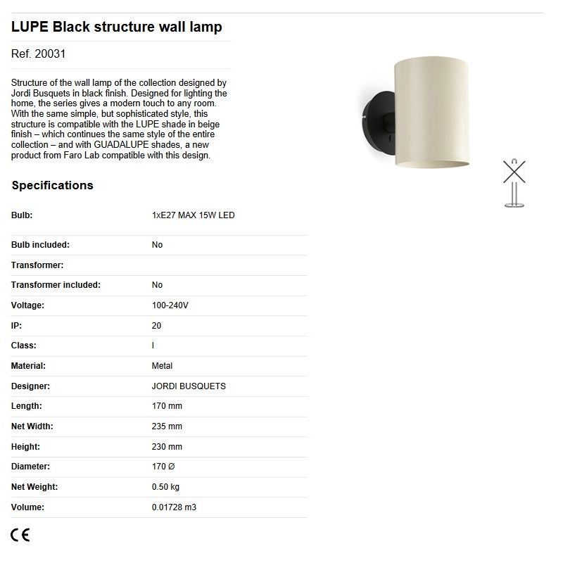 Descriere | cadru metal finisaj negru, abajur metalic cilindric finisaj bej, intrerupator on/off aplicat pe baza |