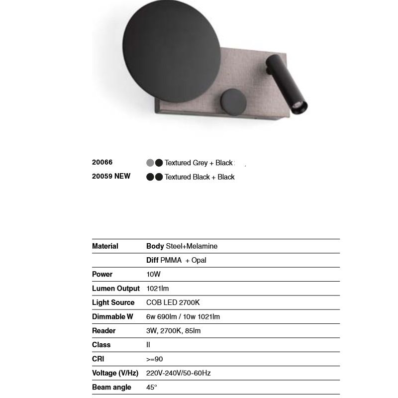 Informatii produs: | lampa de perete ambientala cu reader LED directionabil, lumina este dimabila si se activeaz? prin comutatorul vizibil de pe structura, lampa poate fi instalata pe verticala sau orizontala |