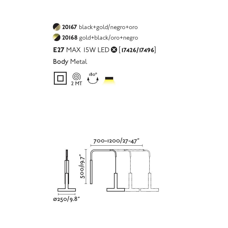 Descriere | metal finisaj negru cu auriu satinat pe interiorul abajurului |