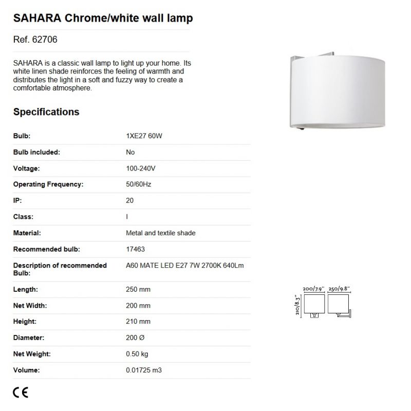 Putere | 1x 60Watt bec E27 exclus din pret (bec recomandat cod referinta:17463) |
