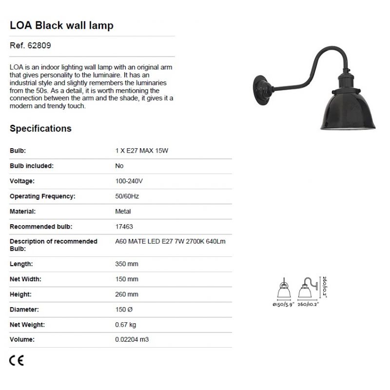 Putere | 1x 15Watt bec LED E27 exclus din pret (bec recomandat cod referinta:17463) |