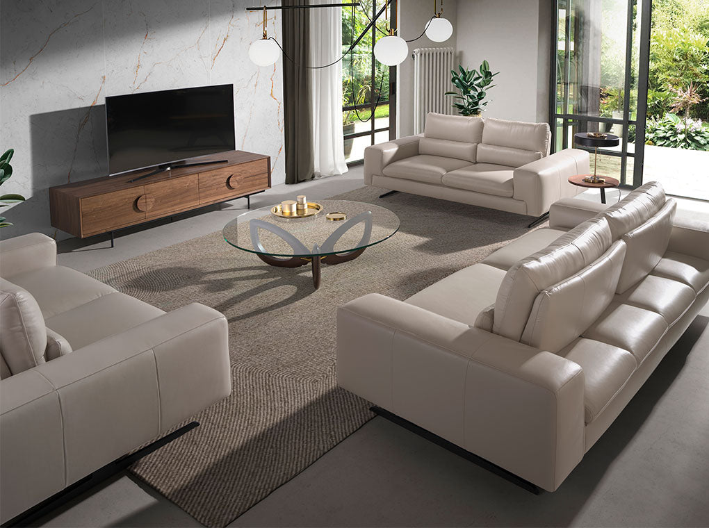Canapea cu 3 locuri tapitata in piele de culoare gri taupe Angel Cerda