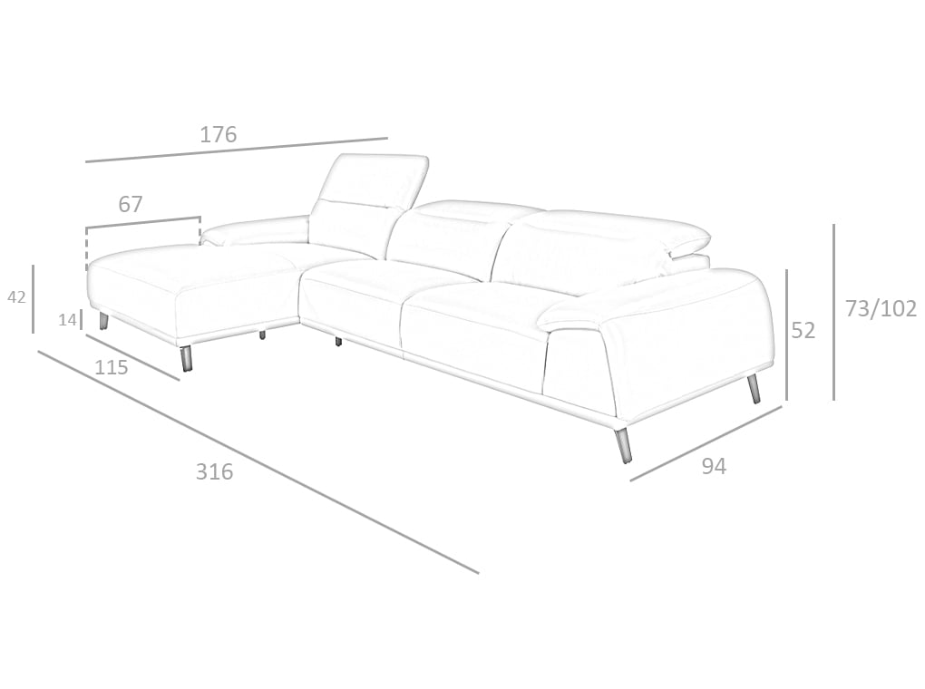 Aceasta canapea cu sezlong tapitata cu piele de bovina de cea mai inalta calitate va oferi acel aspect original si elegant pe care il cautati pentru casa dvs., fidel ultimelor tendinte in materie de decor. Este o canapea cu sezlong cu un stil minimalist si larg, cu o structura interna robusta din lemn de pin natural si picioare din otel inoxidabil intunecat, care ii confera acel aspect de tendinta si eleganta pe care il cautati pentru sufrageria dvs. Dimensiunea scaunelor sale si umplutura sa din spuma poliuretanica de 20 kg/m3, precum si tetierele sale independente reglabile, va vor permite sa aveti confortul maxim, fara a lasa deoparte cea mai mare tendinta. Este combinatia perfecta intre design, eleganta si confort.