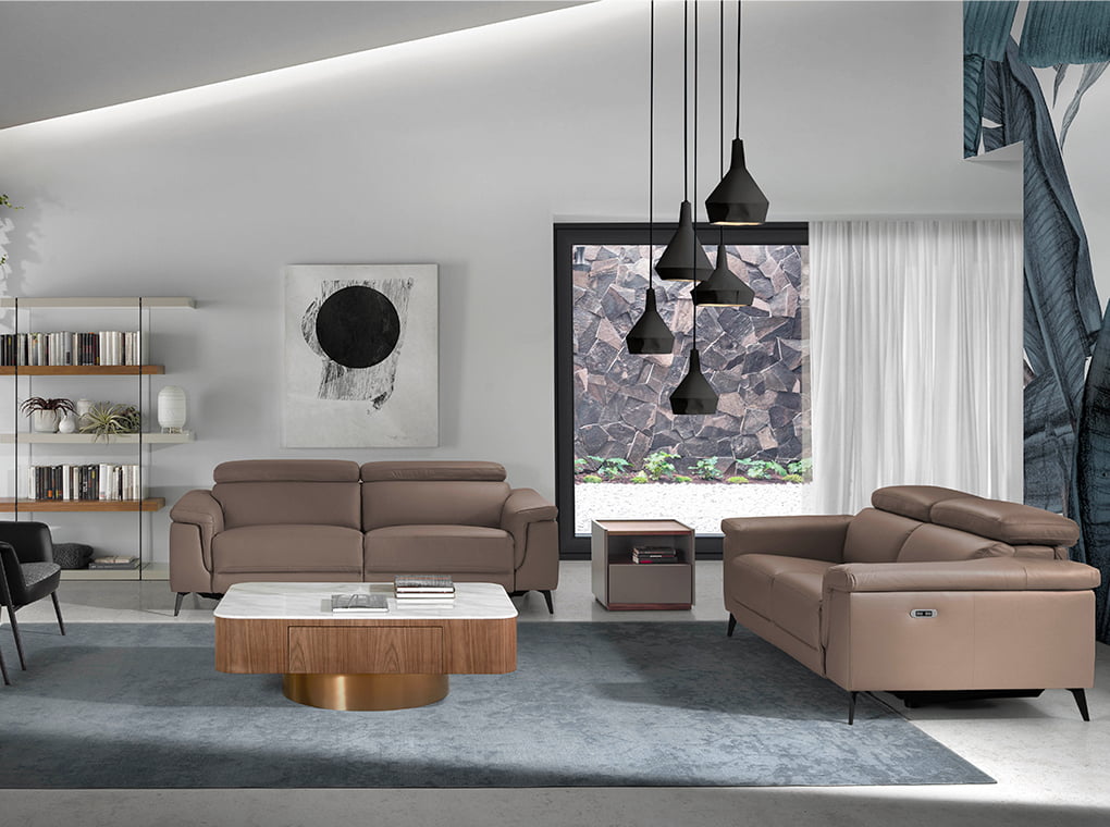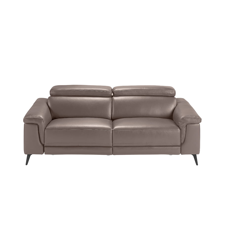 Aceasta canapea moderna cu trei locuri este tapitata cu piele de vaca de 1 mm grosime, de culoare mink, cu brate si tetiere articulate independente. Este o canapea cu un stil avangardist si modern, cu o structura interna robusta din lemn de pin natural si picioare solide din otel vopsit in negru epoxidic, care ii confera acel aspect de tendinta si eleganta pe care il cautati pentru sufrageria dvs. Canapeaua este versatila si functionala, putand fi integrata in orice tip de sufragerie, devenind protagonistul principal al camerei. Toate canapelele noastre sunt fabricate din materiale de cea mai inalta calitate, garantand mobilier durabil si functional. Datorita designului sau original care combina tonuri calde, cum ar fi pielea de vaca de culoare mink si picioarele din otel negru, este canapeaua perfecta pentru a oferi echilibrul perfect intre stil si confort. Dimensiunea scaunelor sale si umplutura sa din spuma poliuretanica de 20 kg/m3, precum si cele doua mecanisme de relaxare si tetierele articulate independente, va vor permite sa aveti confortul maxim, fara a lasa deoparte cea mai mare tendinta.