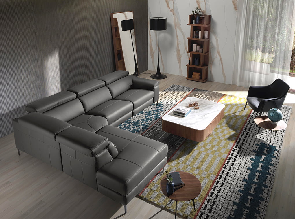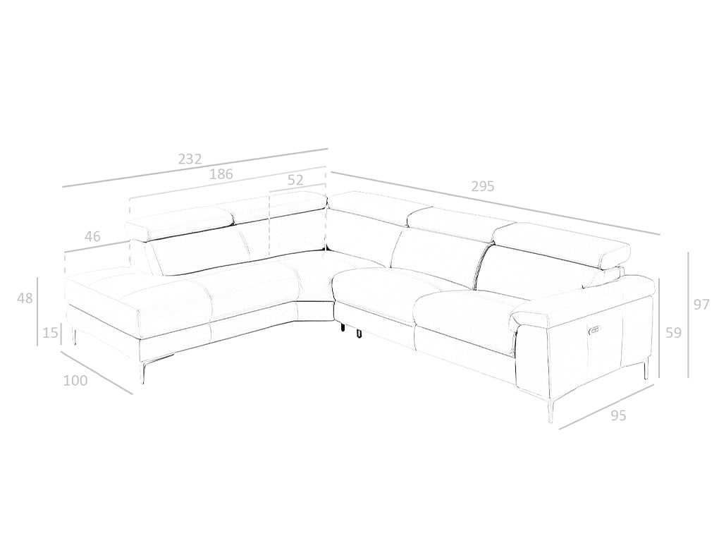 Aceasta canapea de colt tapitata in piele gri este perfecta pentru cei care cauta un design modern si elegant pentru camera de zi. Fabricata din piele de vaca de 1 mm grosime si cu tetiere independente reglabile, aceasta canapea de colt ofera confort maxim si un stil minimalist unic. Cu o structura interna robusta din lemn de pin natural si picioare din otel vopsit negru cu epoxid, aceasta canapea de colt este durabila si functionala. Scaunul lateral cu mecanism de relaxare electric adauga un plus de confort.