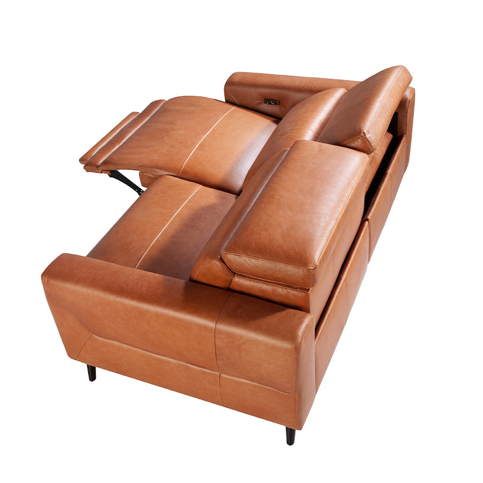 Aceasta canapea moderna cu doua locuri din piele de bivol Bufalo maro este perfecta pentru a aduce un stil avangardist si elegant in sufrageria dvs. Cu mecanisme de relaxare electrice si tetiere articulabile independente manuale, aceasta canapea va ofera confortul suplimentar de care aveti nevoie pentru a va relaxa. Fabricata din materiale de cea mai inalta calitate, aceasta canapea este durabila si functionala. Designul sau elegant si formele originale ale bratelor si tapiteriei maro de bivol o fac perfecta pentru a oferi echilibrul perfect intre stil si confort. Cu doua conectori USB, aceasta canapea este si foarte practica.