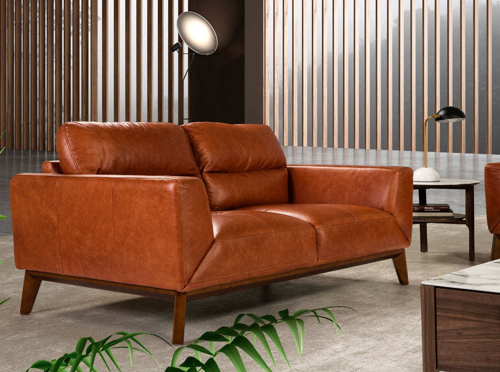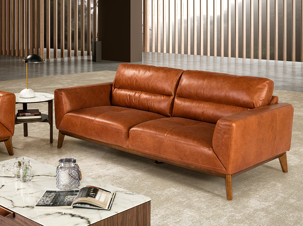 Aceasta canapea moderna de 2 locuri este tapitata cu piele de bivol de cea mai inalta calitate, oferindu-va un aspect original si personal in casa dvs. Este versatila si functionala, putand fi integrata in orice camera. Calitatea sa este garantata de cele mai bune materiale, asigurandu-va un mobilier durabil si functional. Designul sau original combina tonuri calde, cum ar fi cel al pielii de bivol brun si lemnul de nuc al picioarelor sale, oferindu-va echilibrul perfect intre stil si confort. Dimensiunea scaunelor sale si umplutura sa de spuma poliuretanica de 20 kg / m3 va vor permite sa aveti confort maxim, fara a neglija cea mai mare tendinta.