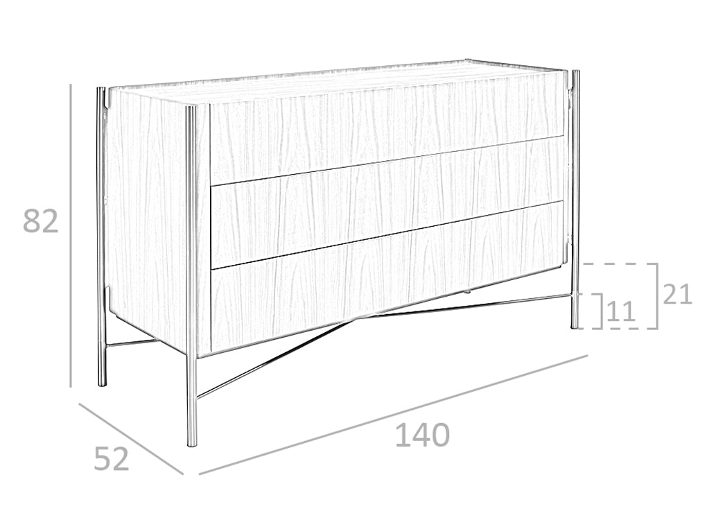 Comoda cu sertare din lemn de nuc si otel intunecat este o piesa de mobilier eleganta si sofisticata, perfecta pentru a aduce un stil modern si avangardist in casa dvs. Cu un spatiu mare de depozitare cu trei sertare furniruite in nuc natural si un sistem de inchidere moale, aceasta comoda este practica si functionala. Fabricata din materiale de cea mai inalta calitate, aceasta comoda va fi durabila si functionala. Designul sau original si unic, combinat cu lemnul de nuc si picioarele din otel inoxidabil intunecat, va oferi acea atingere eleganta si personala pe care o cautati pentru camera dvs.