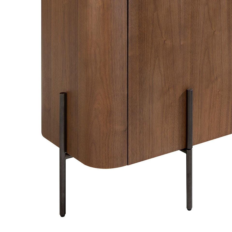 Bufetul din nuc si otel este un produs de mobilier modern si practic, perfect pentru depozitarea obiectelor din camera de zi. Fabricat din materiale de inalta calitate, acesta are un aspect minimalist si industrial, datorita picioarelor din otel inoxidabil negru mat. Cele patru usi cu rafturi interioare din sticla securizata ofera mult spatiu de depozitare, iar designul sau versatil il face potrivit pentru orice spatiu. Cu acest bufet, veti obtine un aspect proaspat si reinnoit in camera de zi, datorita formelor rotunjite ale finisajelor sale.