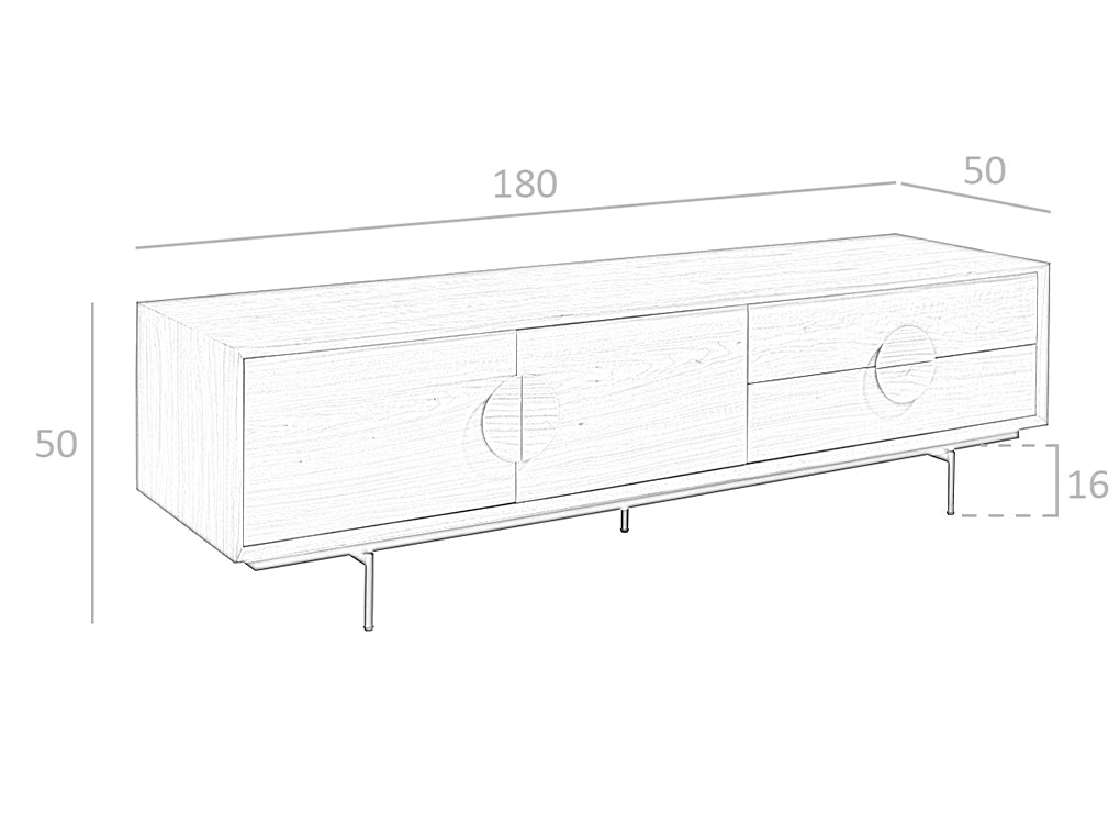 Aceasta comoda TV din lemn de nuc si otel negru este perfect pentru cei care cauta un design modern si elegant. Fabricat din materiale de cea mai inalta calitate, acesta ofera un spatiu de depozitare generos, cu doua dulapuri si doua sertare cu deschidere prin maner si inchidere moale. Cu dimensiuni potrivite pentru orice colt al sufrageriei, aceasta comoda TV va aduce un plus de eleganta si stil in camera dvs.