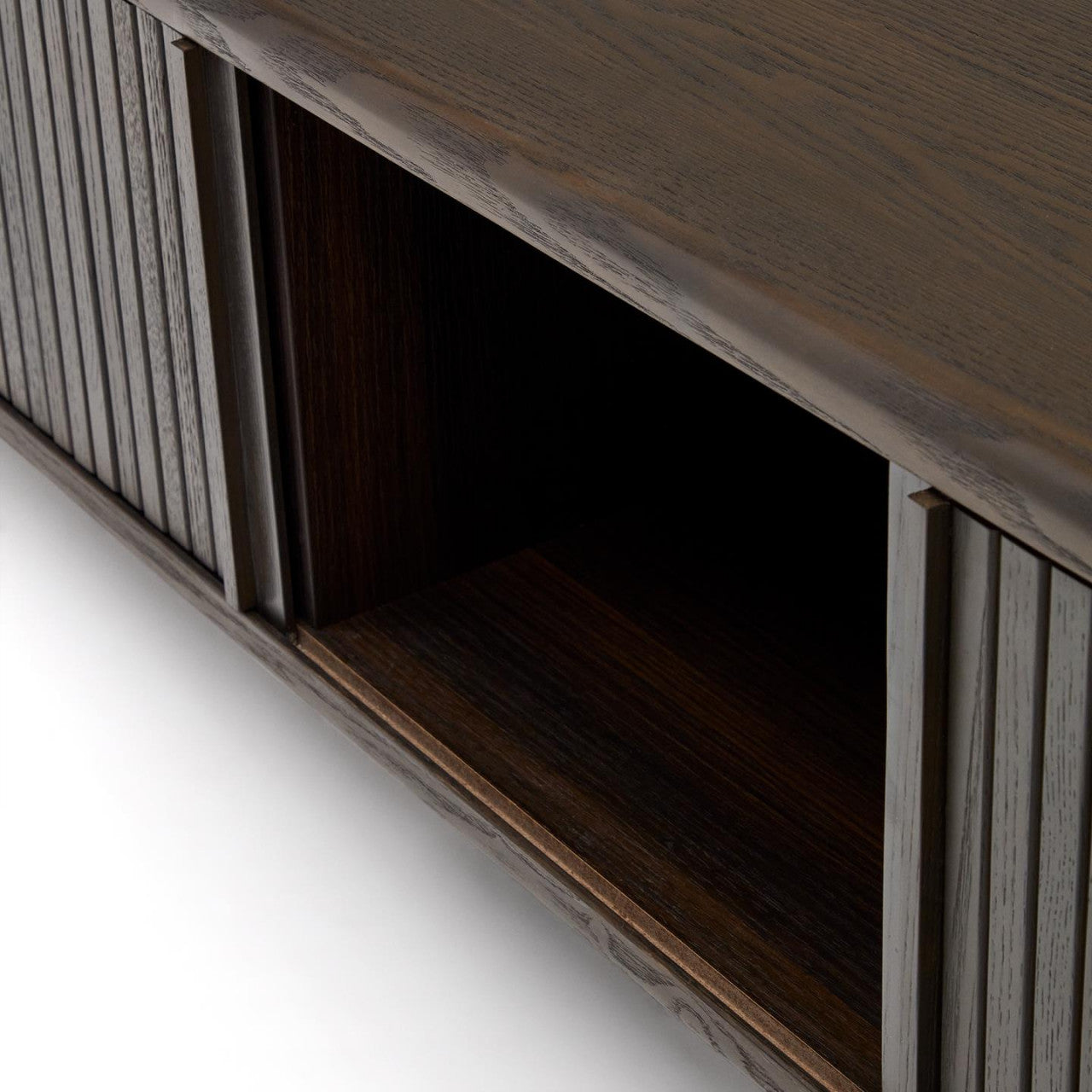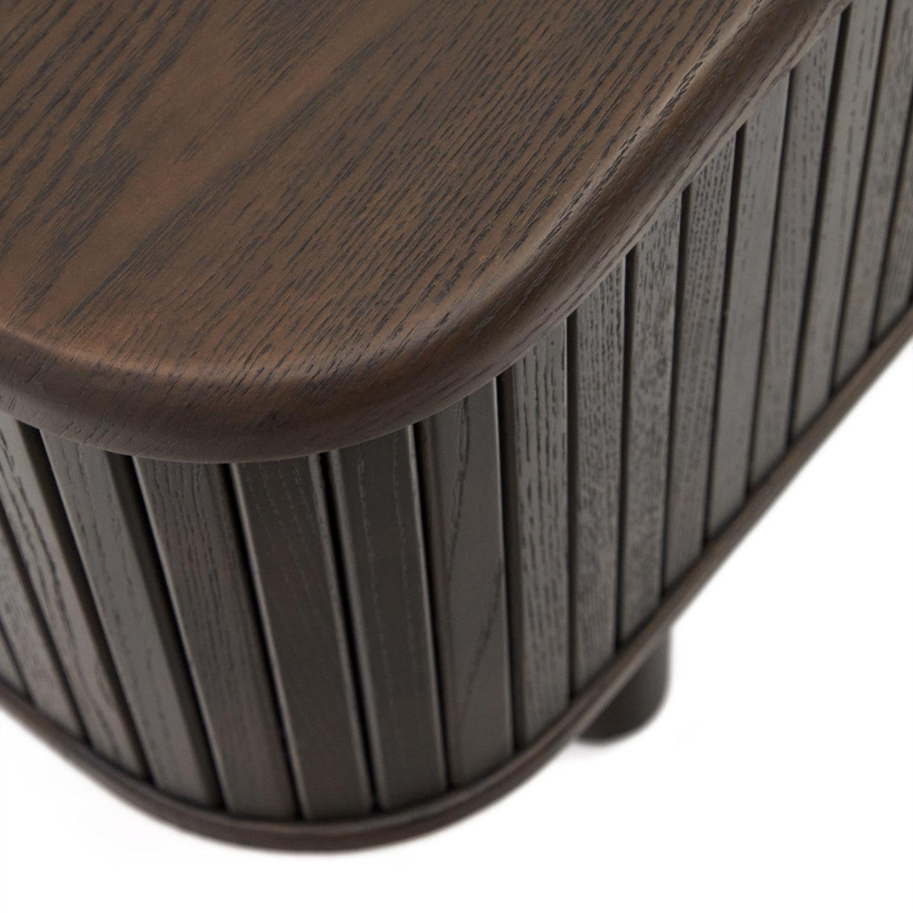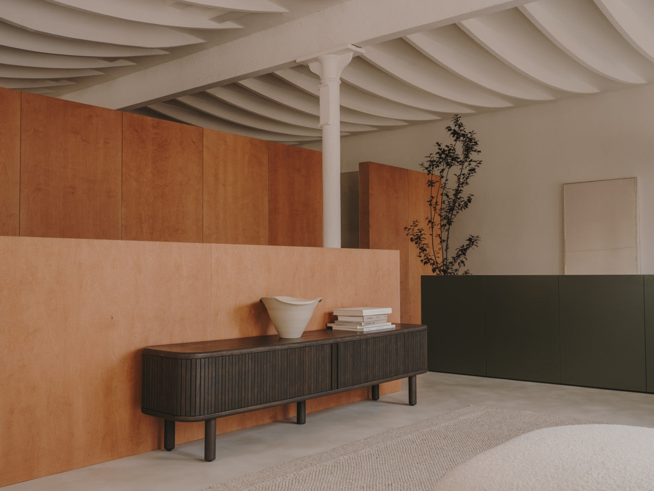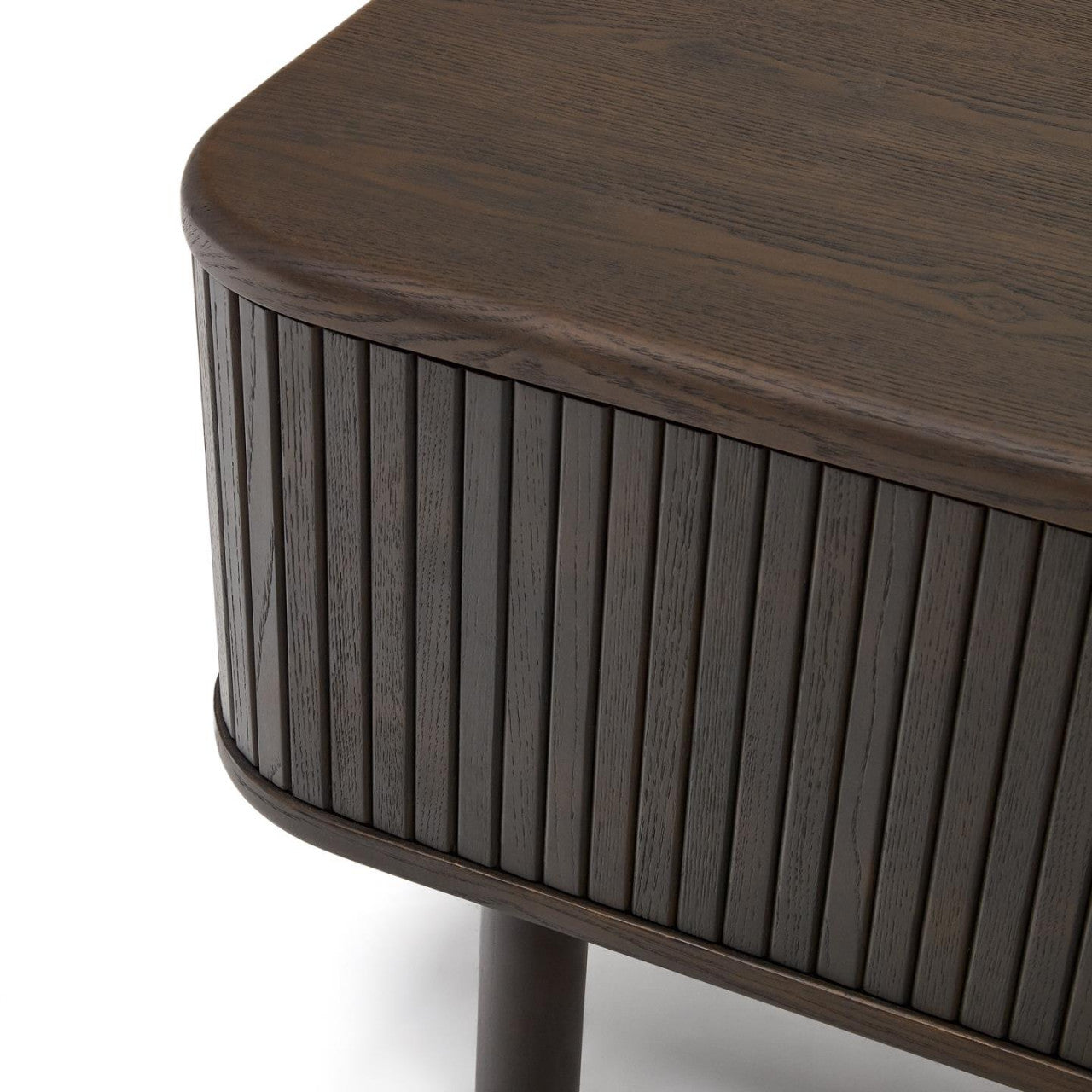 Echipa Kave Home a creat colectia Mailen, cu un design contemporan de forme rotunjite, din furnir de frasin si usi glisante din sipci din lemn care o fac o vedeta autentica.