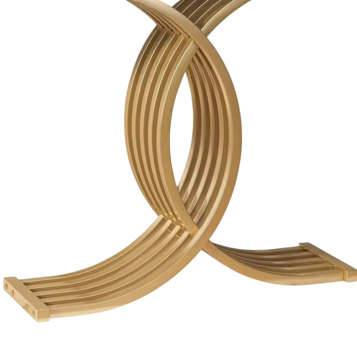 Baza elegantă construită din metal cu finisaj auriu pudrat, oferă un suport robust pentru toate obiectele esențiale. Picioarele cu design geometric, împreună cu placa inferioară groasă, asigură o stabilitate și durabilitate sporită, garantând o utilizare îndelungată.