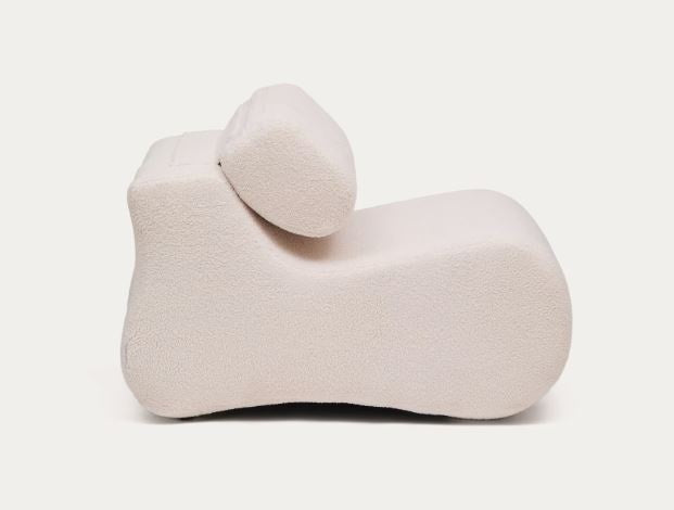 Un design original, forme organice, cu tetiera rabatabila si fabricat in Europa. Sezutul, spatarul si tetiera sunt umplute cu spuma pentru un scaun mediu-moale. Are o structura interna realizata din lemn de pin si placi aglomerate E0.