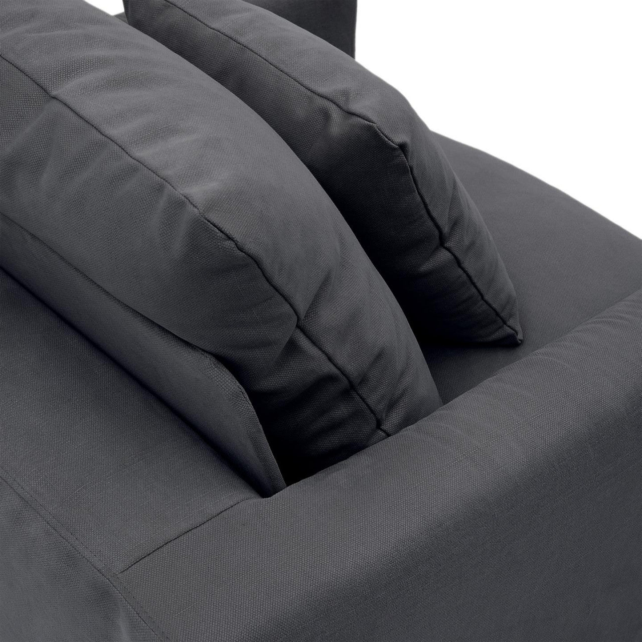 Nora imbina eleganta naturala a tesaturilor din in si bumbac cu un design cu linii drepte. Dimensiunile sale mari si pernele umplute cu spuma si fibre PET reciclate cu efect de puf ii confera un sezut moale de care sa te bucuri in compania altora.