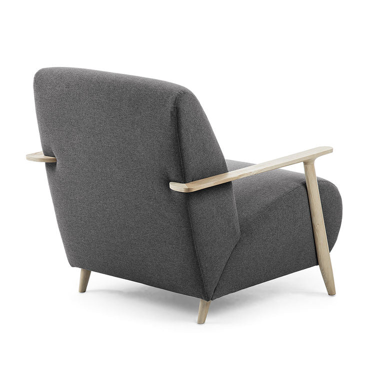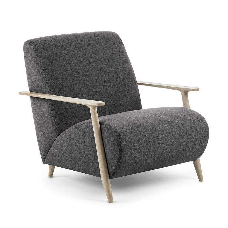 Designul acestui fotoliu este definit de caracterul simplu si minimalist. Acest stil a fost realizat cu ajutorul combinatiei dintre structura scaunului, din lemn de frasin, si a tapiteriei din poliester cu tratament Teflon anti-pete.