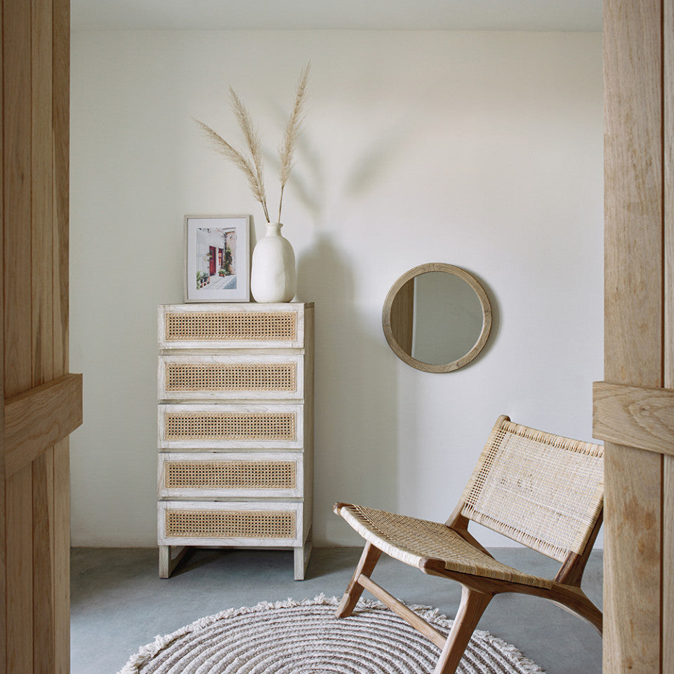 Timpul tau liber este foarte important. Inconjoara-te cu piese naturale, autentice, concepute pentru confortul tau. Fotoliu Beida este realizat din lemn de tec sustenabil si ratan tesut manual si are un design contemporan, jos.