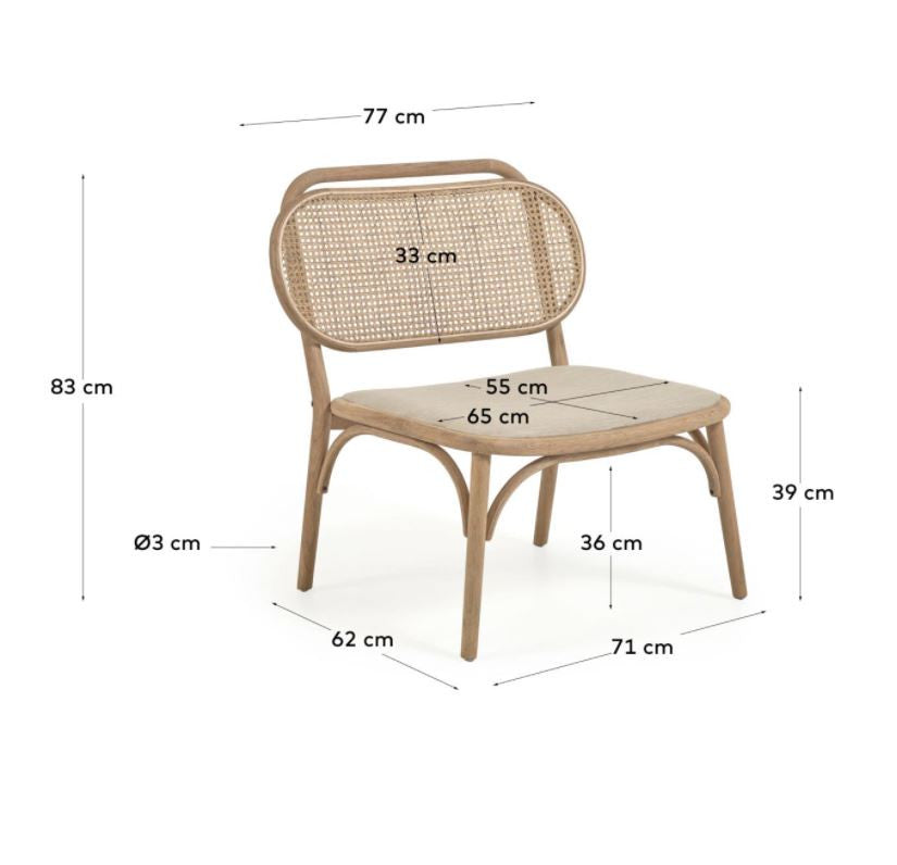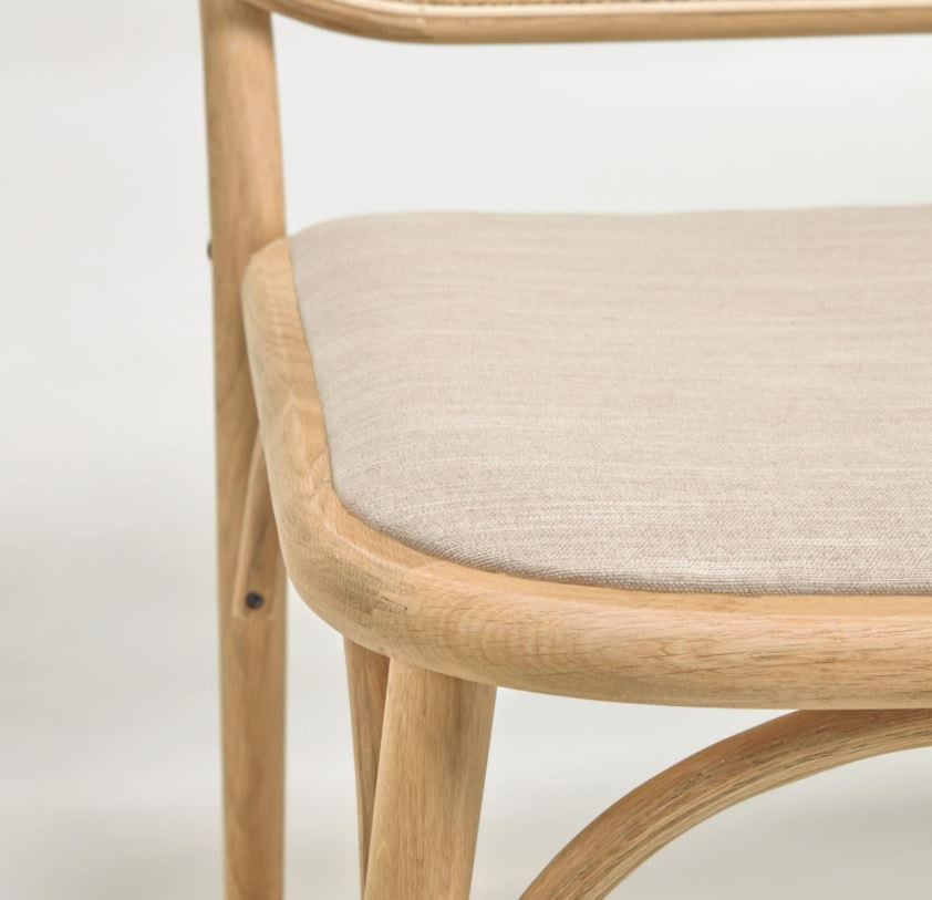 Doriane este un fotoliu realizat manual din lemn de stejar obtinut din surse sustenabile, ratan tesut manual si tapiterie hidrofuga cu efect de in. Ideal pentru a crea un living cool, contemporan, cu un aspect natural datorita designului sau clasic actualizat.