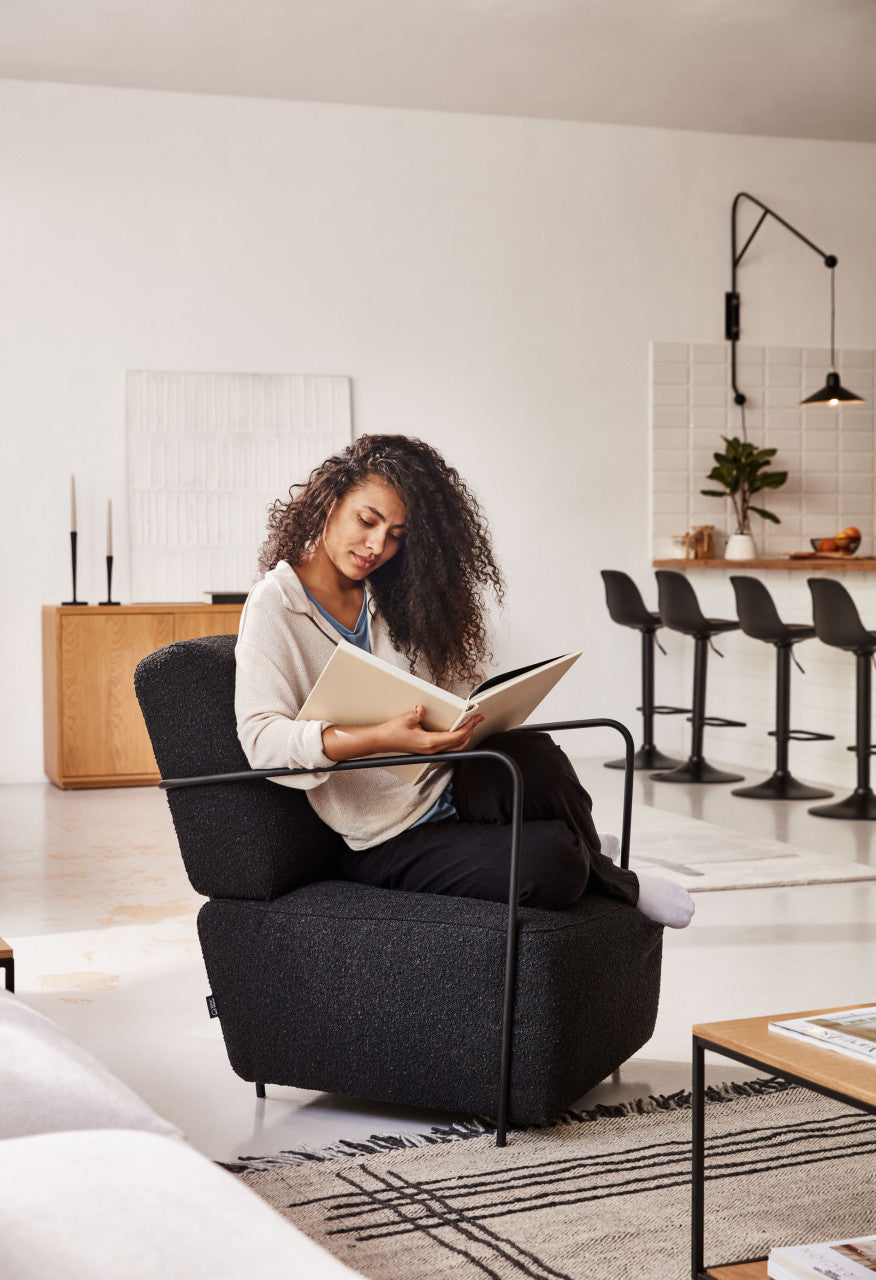 Fotoliu negru din textil Gamer Shearling Kave Home