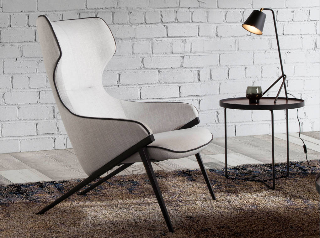 Fotoliu Tapitat cu Stofa Gri si Margini Negre Angel Cerda