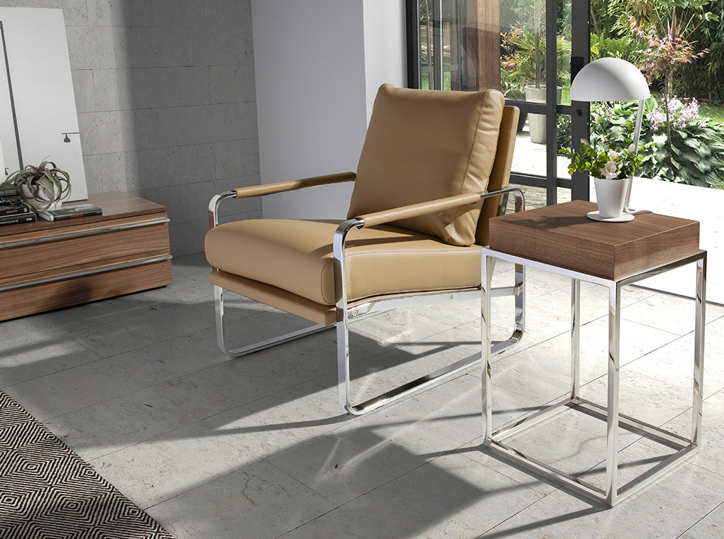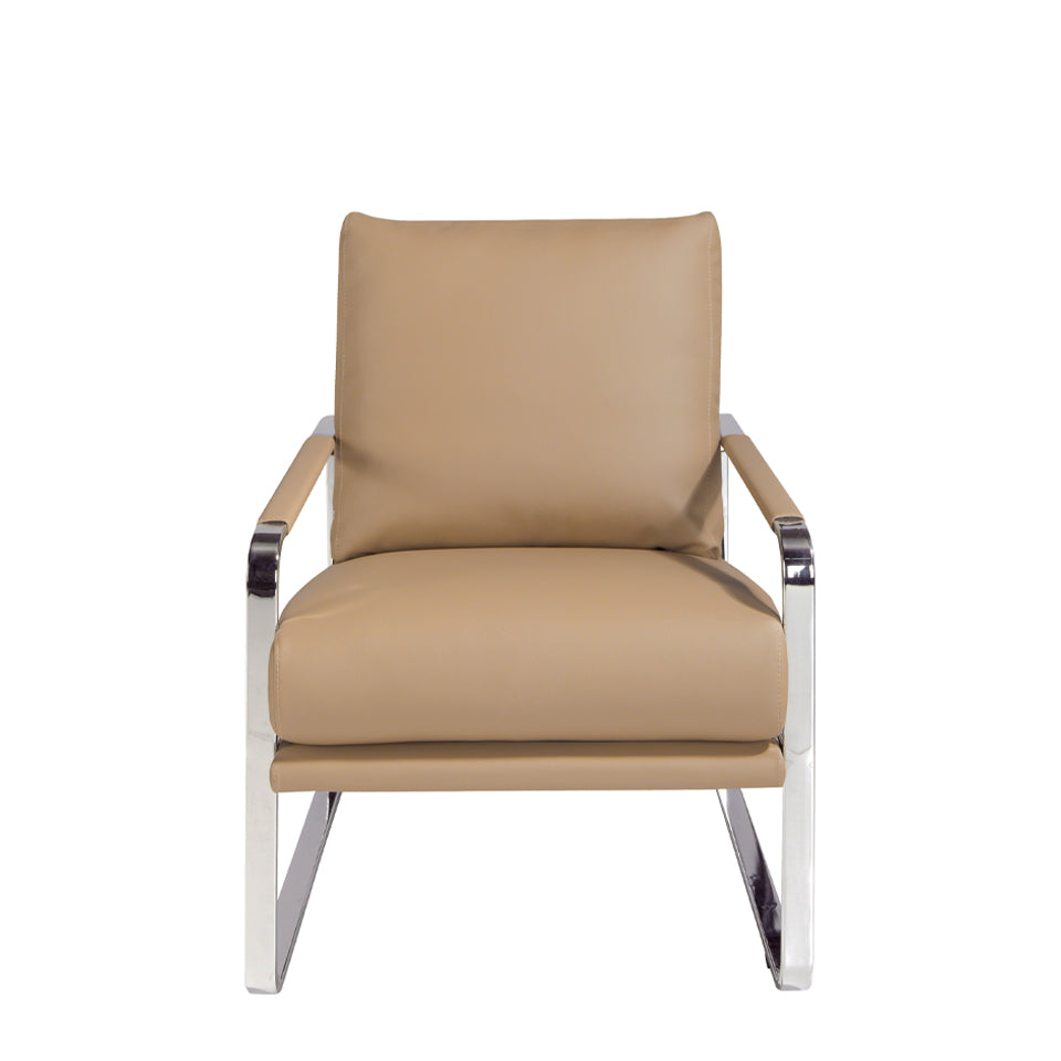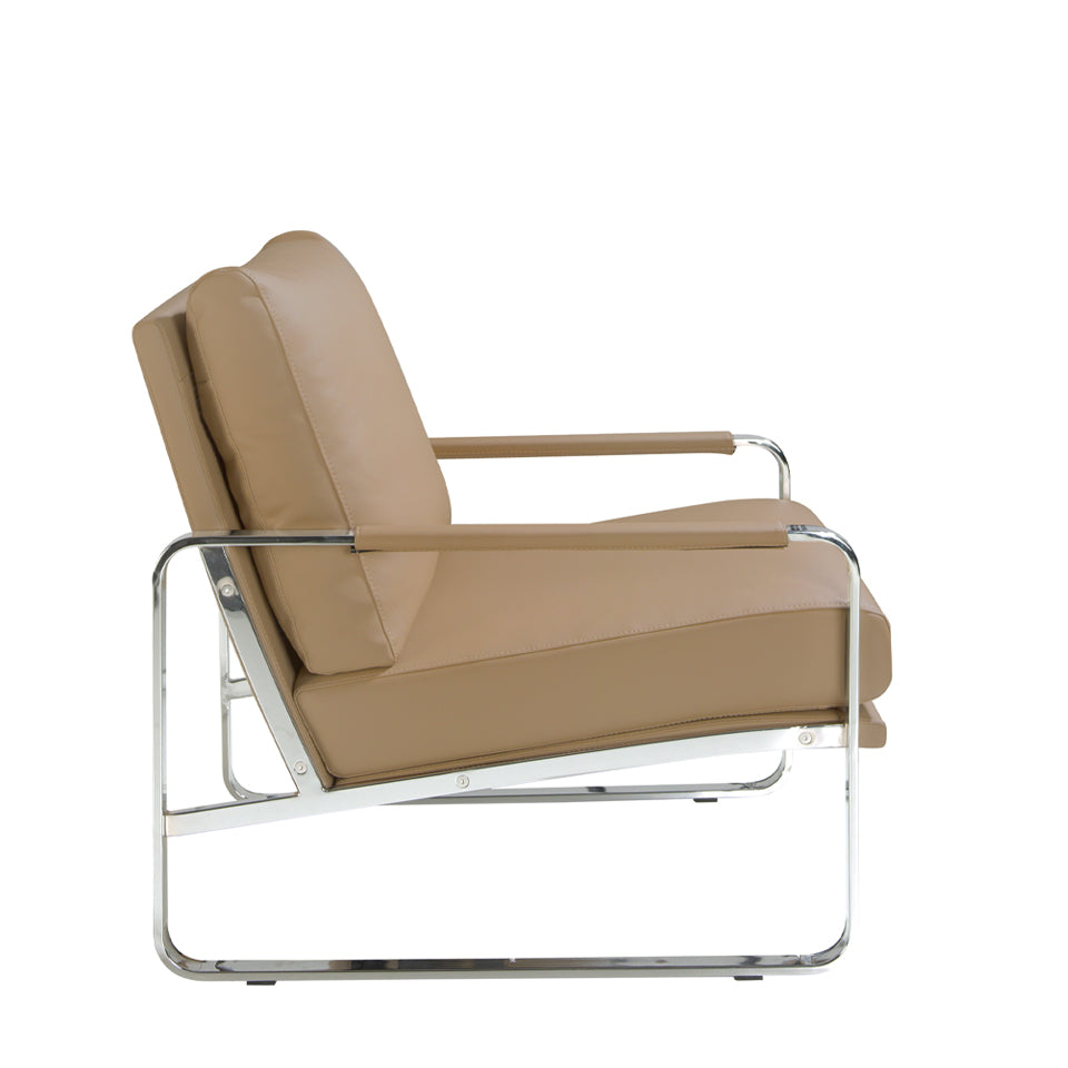 Fotoliul tapitat in eco-piele mink este o piesa de mobilier de design modern, care va adauga un strop de eleganta avangardista in casa dvs. Cu o structura din otel cromat si brate tapitate asortate, acest fotoliu este versatil si functional, putand fi amplasat in orice camera de zi, sala de mese, zona de lectura sau dormitor. Fabricat din materiale de cea mai inalta calitate, acest fotoliu ofera confort maxim, datorita scaunului si spatarului umplute cu spuma poliuretanica de inalta densitate. Designul minimalist si elegant, precum si combinatia de piele ecologica mink si otel inoxidabil cromat, fac din acest fotoliu o piesa de decor distinctiva si diferita.
