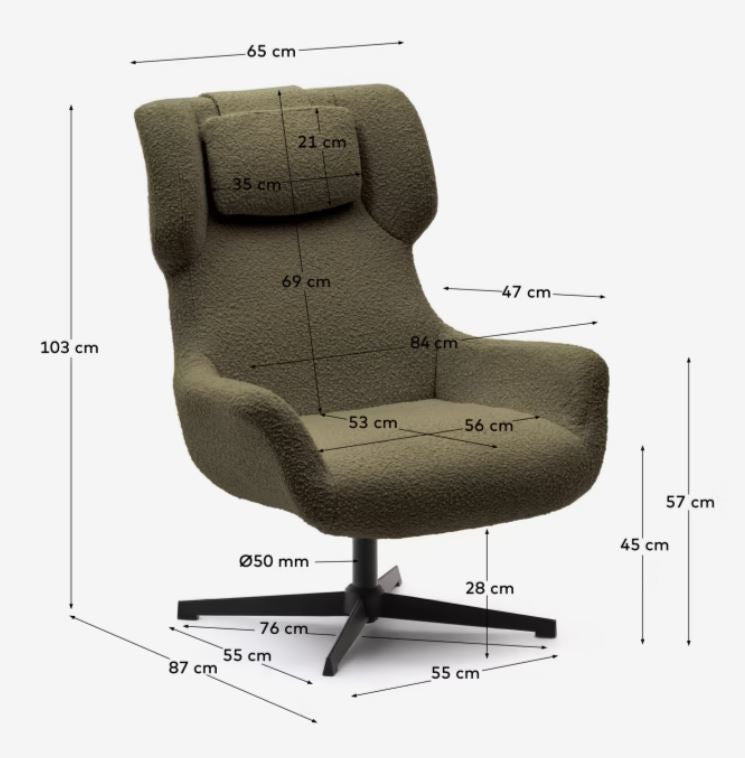 Cu un design contemporan, cu brate si tetiere, fotoliul pivotant Zalina va ocupa un loc central in camera dvs. de zi. Bucurati-va de momentele dvs. de relaxare.