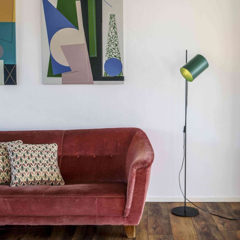 Descriere | cadru metal finisaj negru, abajur metalic cilindric finisaj verde, intrerupator on/off aplicat pe cablu de alimentare |