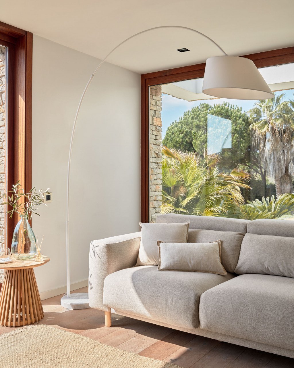 Indiferent de unghiul din care privesti acest lampadar, el emana intotdeauna design si stil datorita structurii metalice si abajurului din bumbac, ambele in finisaj alb.