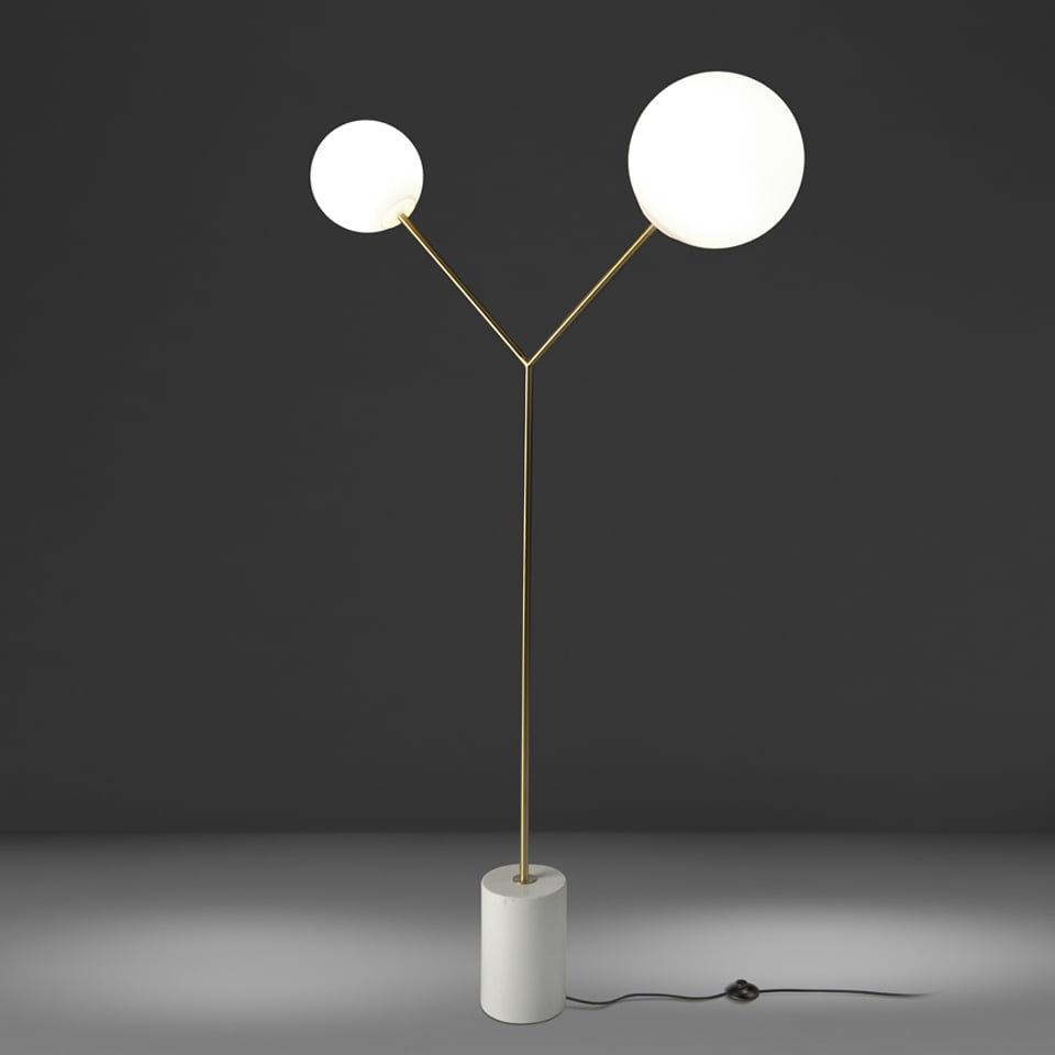 Lampadar din Marmura Alba si Otel Auriu cu Sticla Alba Angel Cerda