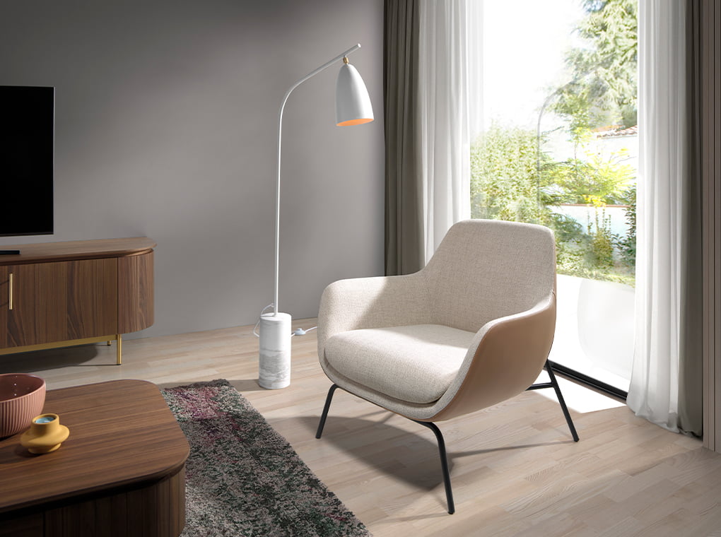 Aceasta lampa de podea din marmura si otel alb este un corp de iluminat modern, cu un design versatil si practic. Finisajul de marmura calacatta si abajurul directional ofera o nota de eleganta si confort in orice camera. Fabricata din materiale de cea mai inalta calitate, aceasta lampa poate suporta un bec LED de pana la 60W si are o lungime de cablu de 230 cm. Cu dimensiunile sale si abajurul reglabil, aceasta lampa de podea este ideala pentru a ilumina orice camera din casa ta.