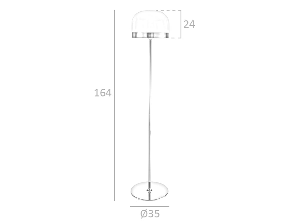 Lampadarul nostru din otel si sticla transparenta este un corp de iluminat modern si elegant, perfect pentru a adauga o nota distincta oricarei camere. Finisajul din otel auriu si abajurul din sticla securizata transparenta ofera o combinatie perfecta de stil si practicitate. Produsul nostru este fabricat din materiale de cea mai inalta calitate, garantand durabilitate si functionalitate. Designul clasic si elegant al lampadarului nostru se potriveste cu cele mai recente tendinte in decorare, creand camere cu un stil unic. Dimensiunile sale il fac piesa centrala pentru a decora si ilumina orice camera din casa ta.