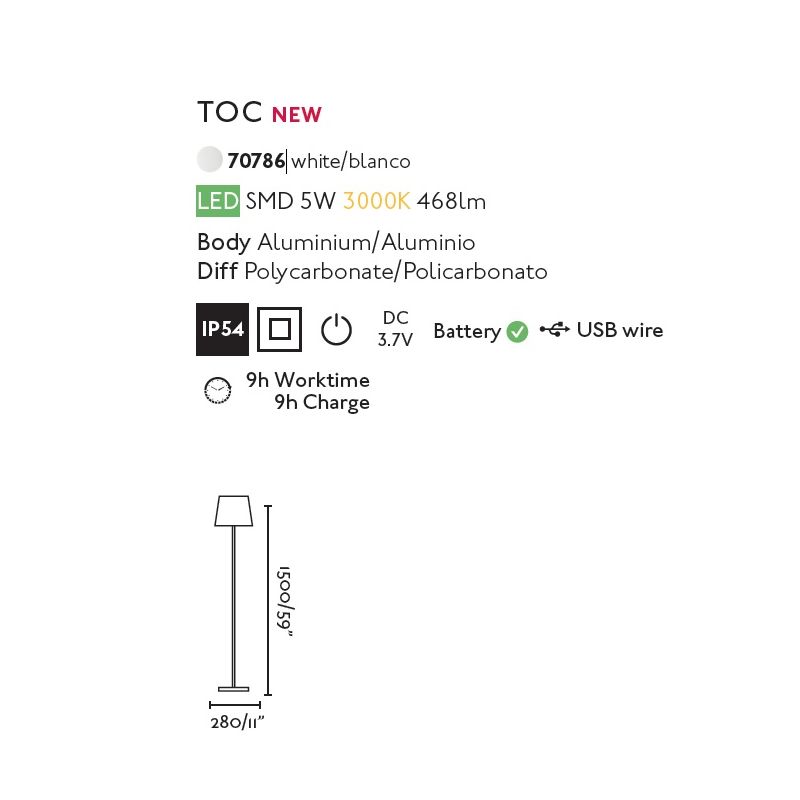 Informatii produs: | lampadar LED cu touch control, USB Charger + baterii incluse in pret, protectie la umiditate ridicata IP54 |