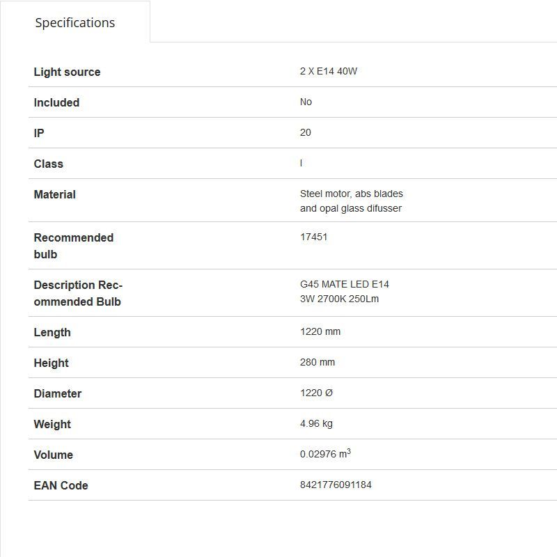 Informatii produs: | lustra cu ventilator si telecomanda cu 3 trepte de viteza reglabile 14-30-58 Watt si 95-150-200rpm. |