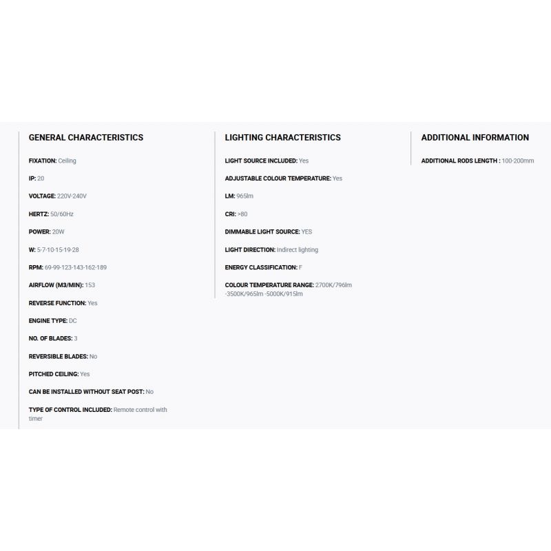 Informatii produs: | Ventilator cu telecomanda, cu functie reversibila iarna-vara, 6 trepte de viteza reglabile 5-7-10-15-19-28Watt si 67-99-123-143-162-189rpm, activat prin telecomand? inclus? |