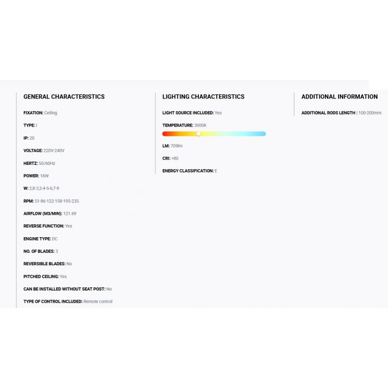 Informatii produs: | lustra cu ventilator si telecomanda, cu functie reversibila iarna-vara, 6 trepte de viteza reglabile 4-6-9-13-22-32Watt si 51-77-103-129-155-185rpm |