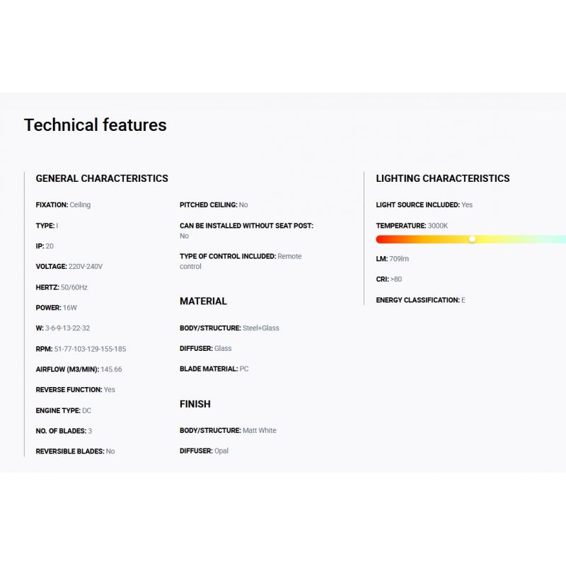 Informatii produs: | lustra cu ventilator si telecomanda, cu functie reversibila iarna-vara, 6 trepte de viteza reglabile3-6-9-13-22-32Watt si 51-77-103-129-155-185rpm. |