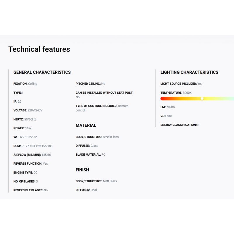 Lustra cu Ventilator si telecomanda MINI ETERFAN M negru mat/transparent